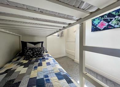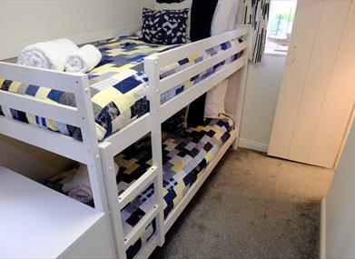 Bedroom 3 with bunk beds suitable for children, charged at an additional £20 per bed per week. Chest of drawers.
