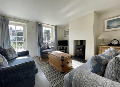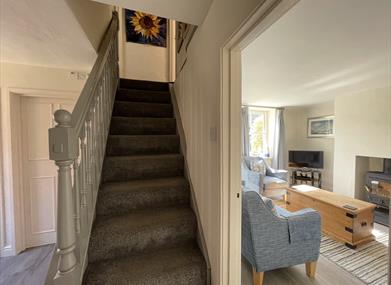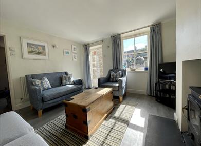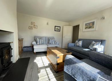 Living Room with wood burner, Samsung 32? Smart TV, DVD, WIFI, selection of games and a door opening onto the sunny south facing courtyard garden. Dab Radio with Bluetooth.