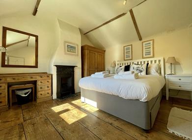 Bedroom 1 with King bed, bedside tables, good storage, DAB radio with Bluetooth.