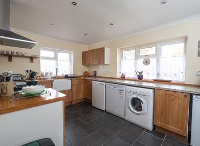 Light and airy lounge with coffee table, comfy sofas, and smart TV. Well equipped kitchen with oven, fridge, dishwasher, microwave and washing machine. French doors leading from lounge to private enclosed garden. Cosy dining room for meals. Main bedroom with a comfy double bed, spacious built-in wardrobe and dressing table. 2nd bedroom (twin) with built in wardrobe and French doors to garden. Spacious walk-in wet room with shower, sink and WC Cloakroom with WC and sink. (2 Dogs maximum and both free)