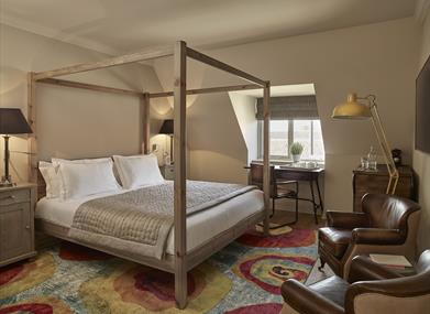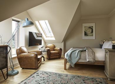 32 spacious, individually designed rooms offer state-of-the-art amenities with a smart TV and digital radio, some with views onto the landscaped courtyard at the heart of the hotel. Every corner invites you to kick back and relax, from the velvet couches in the cosy private bar to the comfy armchairs around the wood burner in Ivy's - a lofty upstairs lounge with original beams and exposed brickwork,