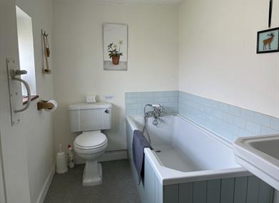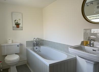 Bathroom including a bath with shower mixer tap, washbasin & WC